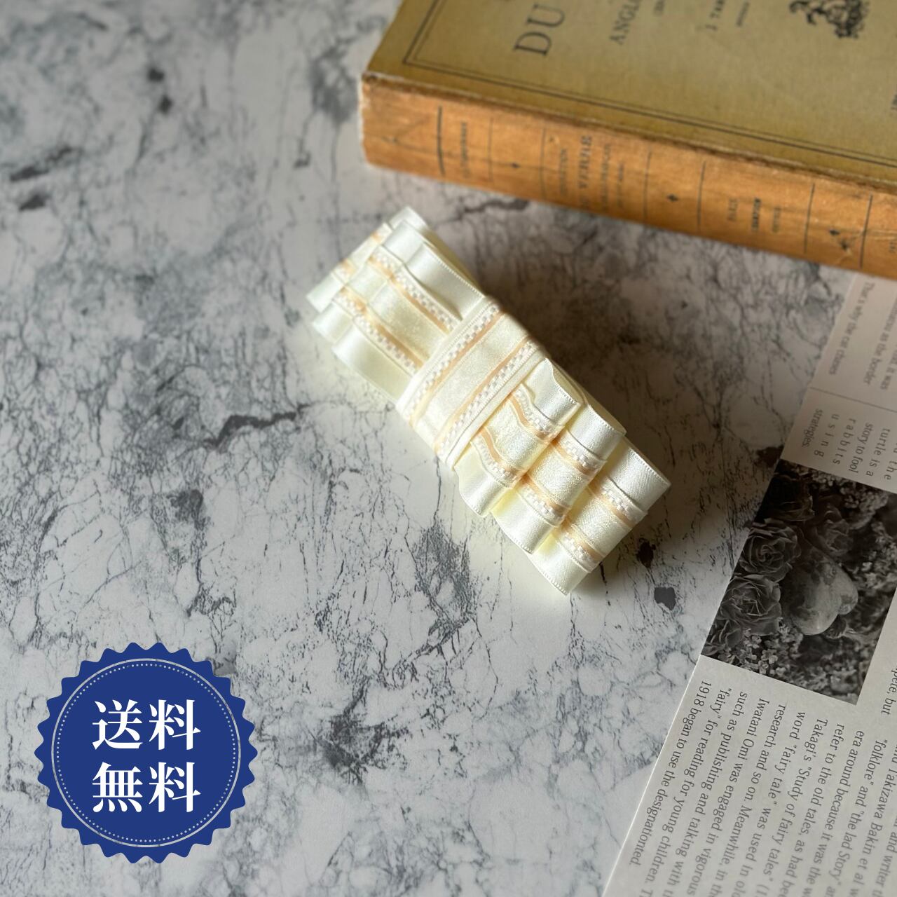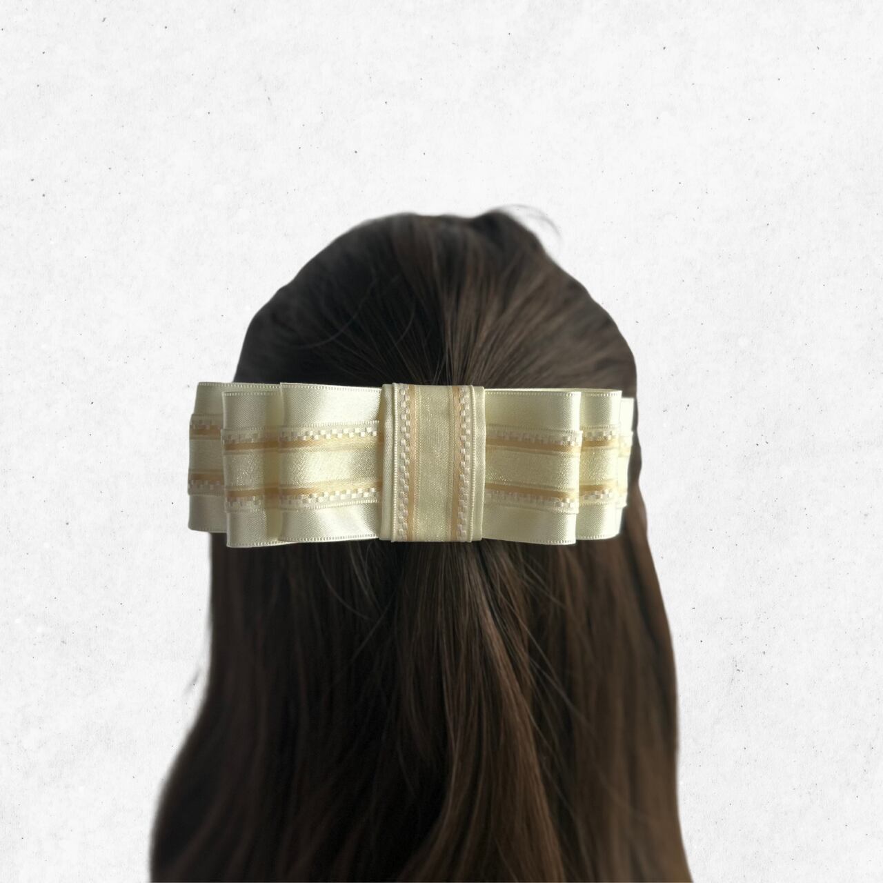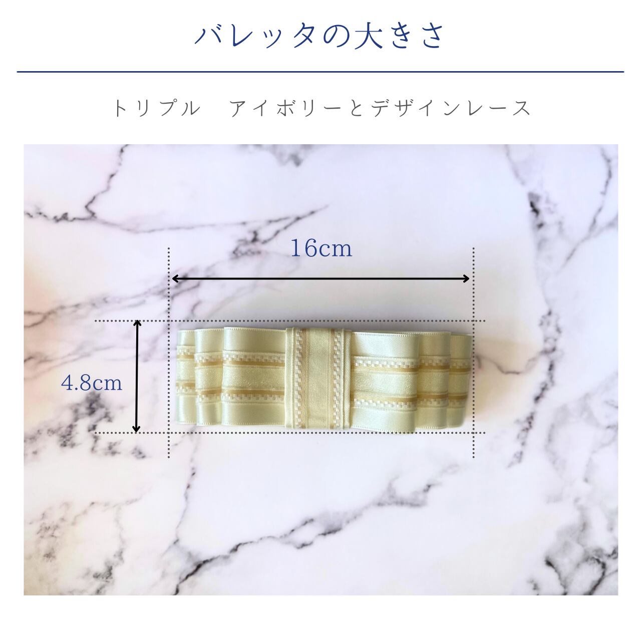 また、バレッタ部分には白とデザインレースを配しデザインにこだわりました。